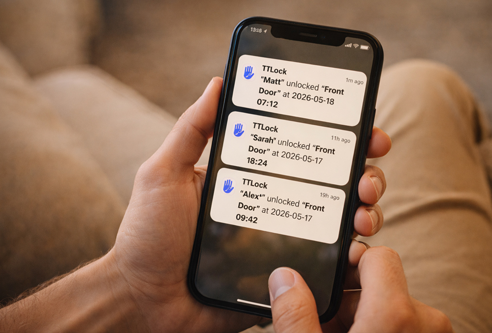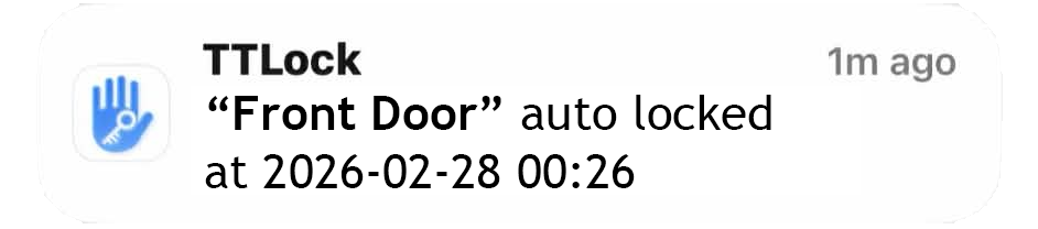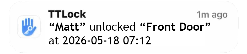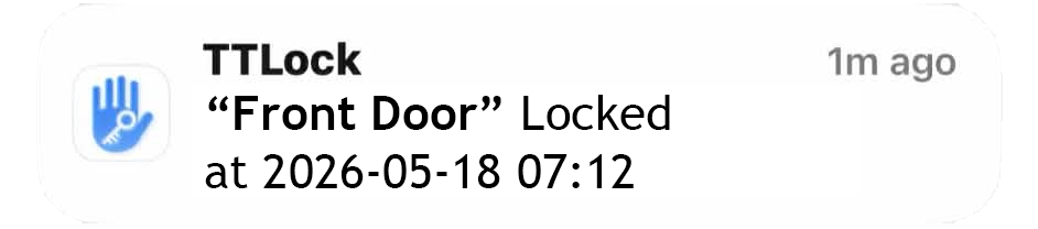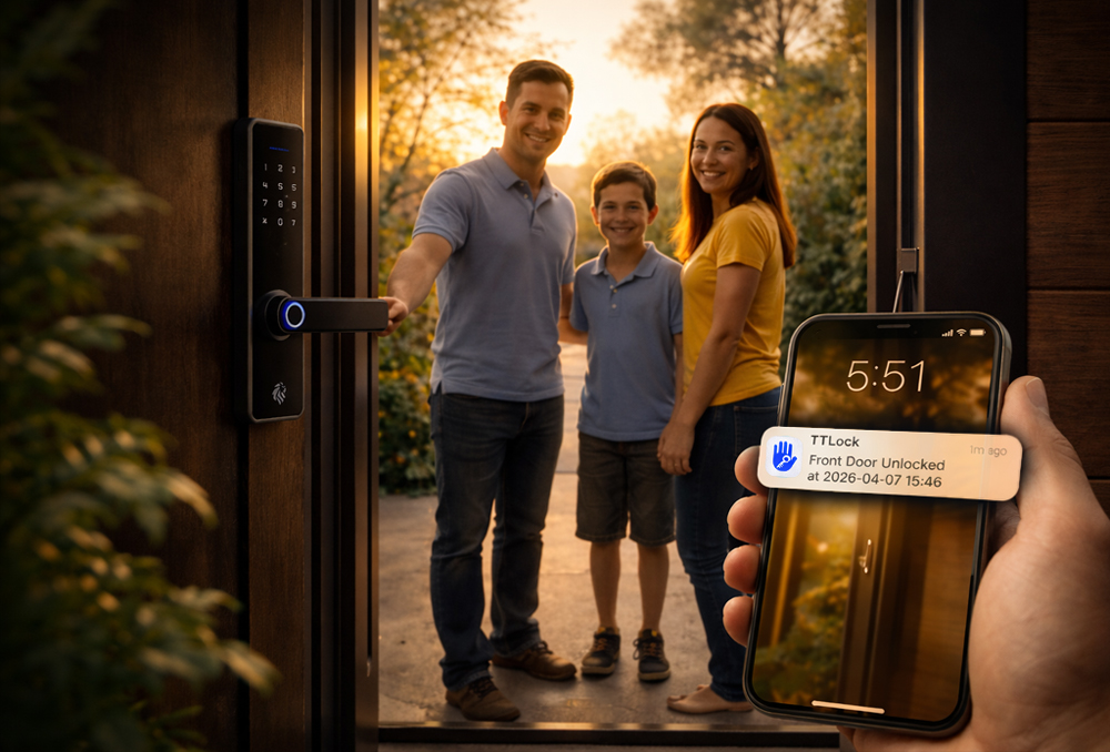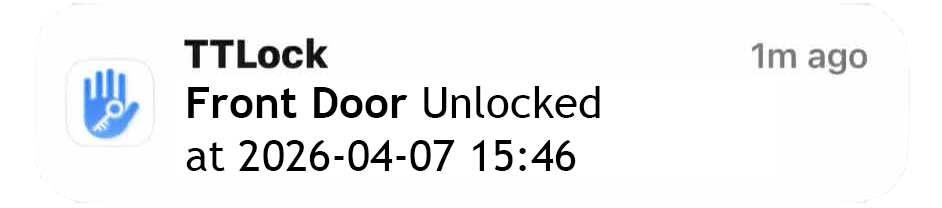 Your phone buzzes. “Front door unlocked · 3:47 pm.” They’re home. You can breathe.
