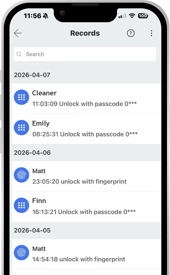A full timestamped access log. Every unlock, always.