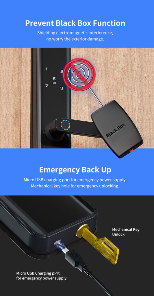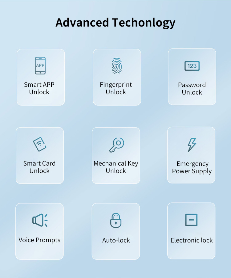 | Unlocking Methods | APP, Fingerprint, PIN code, Card, Key |